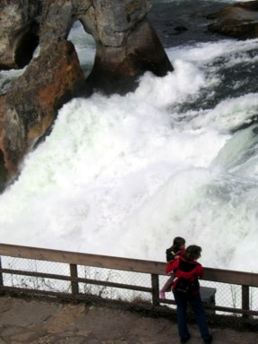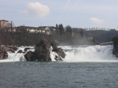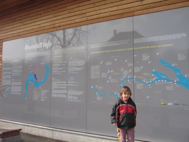 Rheinfall es la catarata más grande de la Europa con 150 metros de ancho y 23 de altura. Nada más llegar al parking, un gran panel informativo (foto 1), nos da todo tipo de datos técnicos como su volumen medio de unos 600 metros cúbicos de agua por segundo, los máximos y mínimos históricos, etc. Pero lo mejor es ver todos los caminos que se pueden recorrer alrededor del salto, a pie, en bici, en barco, etc. Nosotros optamos por caminar ya que queríamos estirar las piernas después de llevar algunas horas en el coche. Y lo que parece una cascada pequeña, es un buen recorrido para bordearla (fotos 2,3 y 4), y arrimarse hasta donde rompe el agua (foto 5). Además para llegar aquí hay que subir al castillo (foto 6), y luego descender de nuevo al nivel del río. Por supuesto luego hay que desandar todo para regresar al parking, vaya que es una buena caminata, simplemente haciendo el paseo principal. Bueno quien se sienta vago, puede acortar camino regresando desde la cascada en barco hasta el parking, pero os aseguro que la caminata vale la pena, es muy tranquila y relajante...