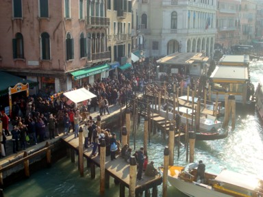 este lugar está siempre lleno de gente, ya para desembarcar del vaporetto hay
