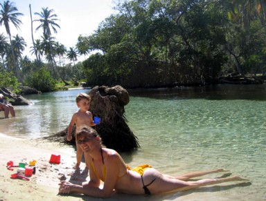 necesario, un limpio y fresco río que desemboca en la playa, sustituye a las