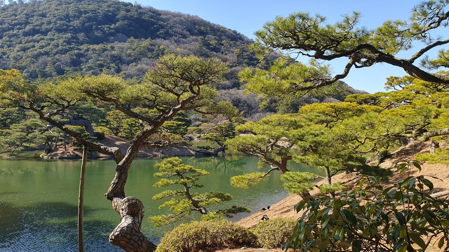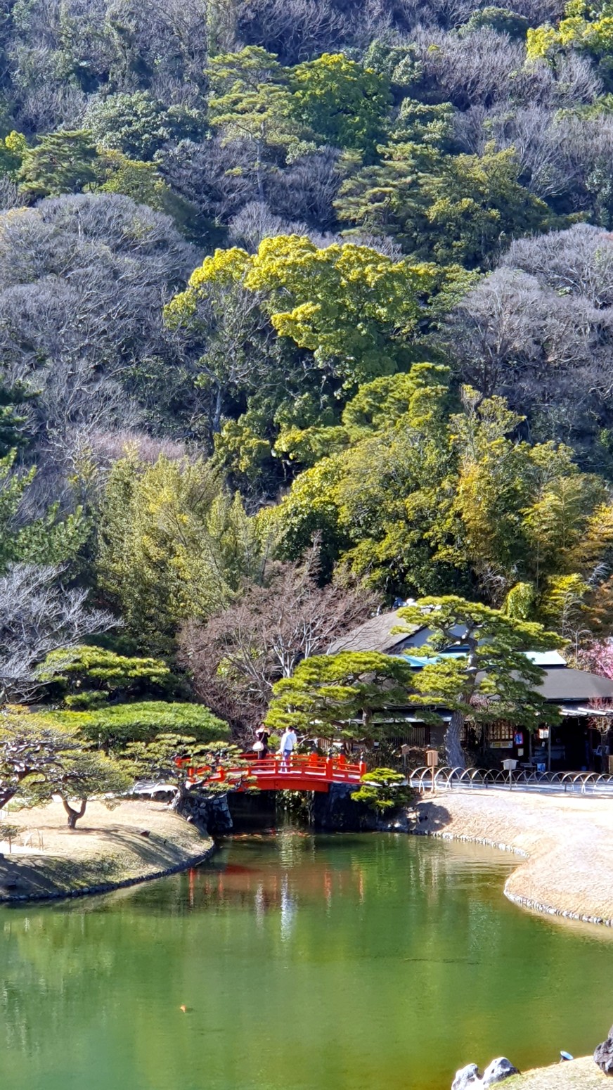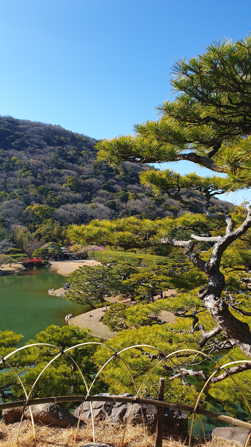 y Korakuen de Okayama. Es el jardín Ritsurin o Ritsurin Koen, construido por los señores feudales locales durante el período Edo temprano.