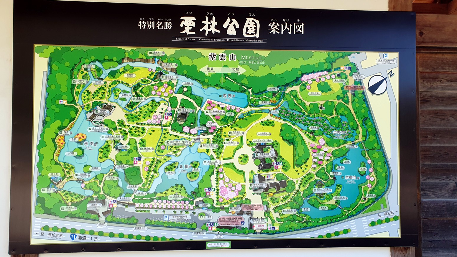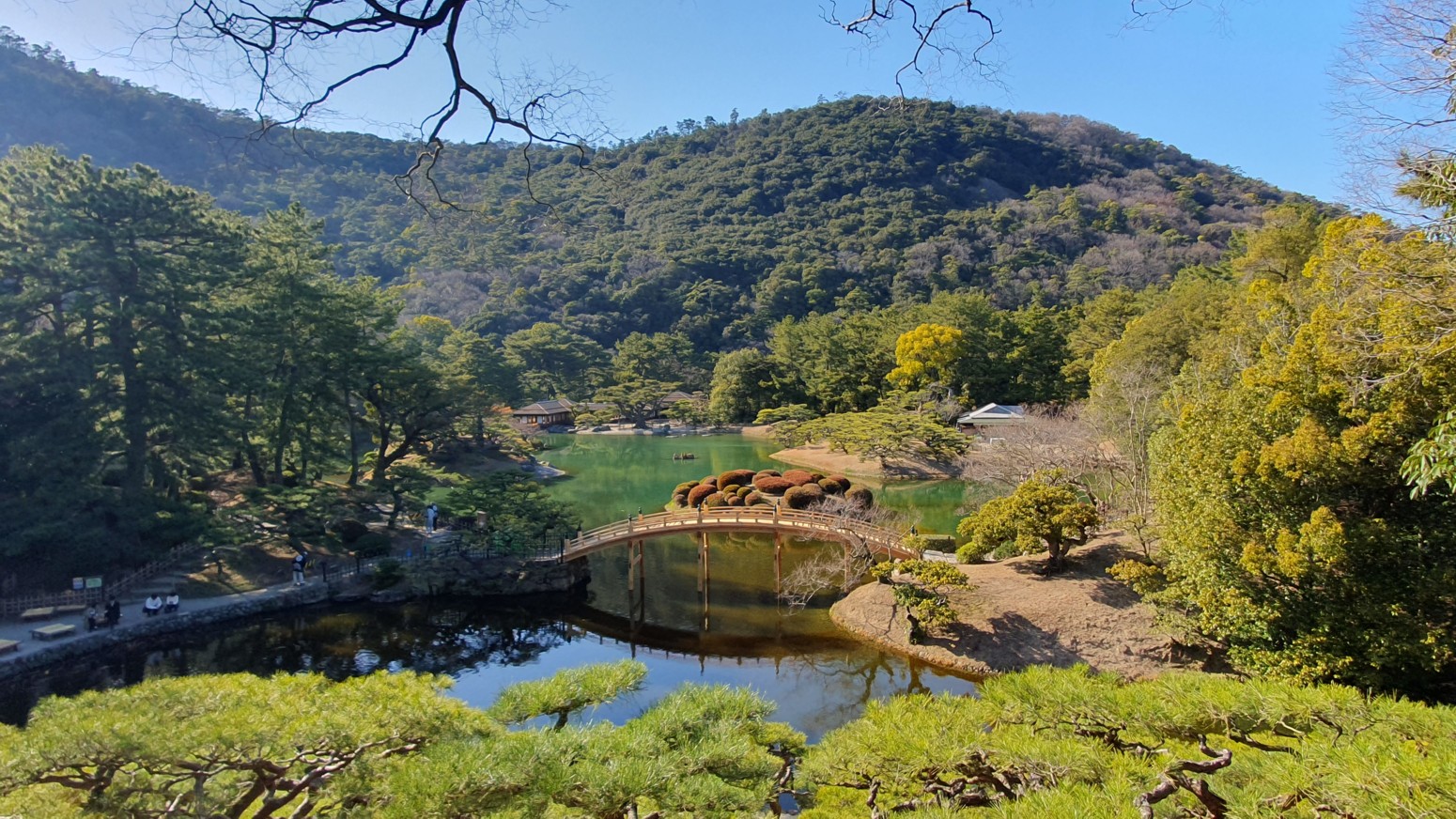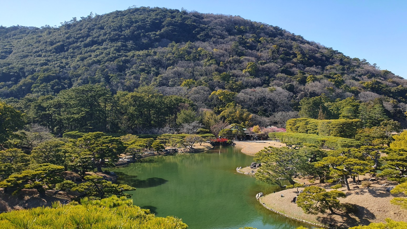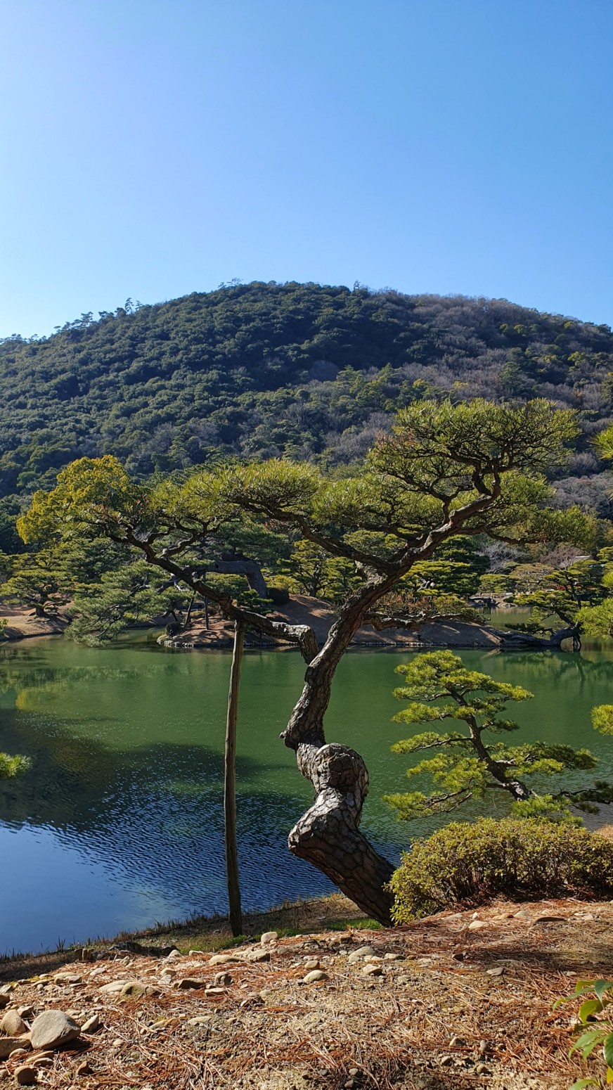 y Korakuen de Okayama. Es el jardín Ritsurin o Ritsurin Koen, construido por los señores feudales locales durante el período Edo temprano.