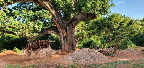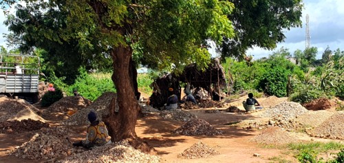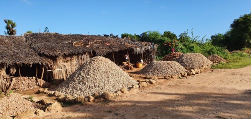 Esta gente no tiene casa, viven en una choza junto a sus montones de piedra tallada, rodeados de