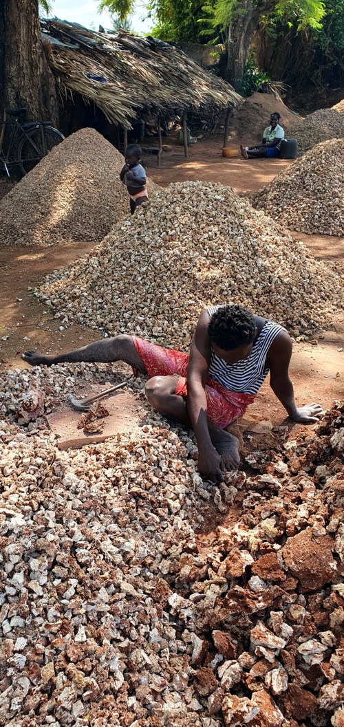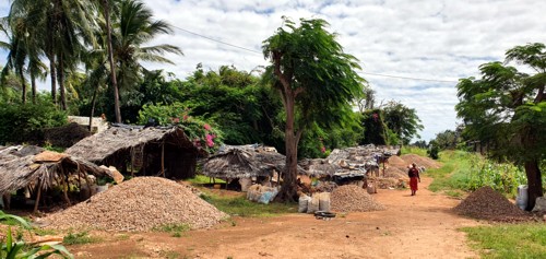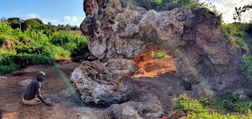 En la costa de Malindi que se asienta sobre depósitos de coral, este aflora en muchos lugares en donde