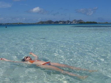 que nos espera, fina arena blanca y un sol implacable, y claro una transparente y