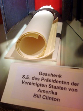 o un pergamino con trozos de la constitución americana regalo de Clinton (foto