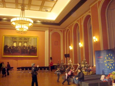 En la entrada del primer salón por el que pasamos, ya nos esteraba Santa, y unos