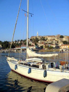 la costa en 1763, después que se rellenase el canal que separaba Rovinj de tierra