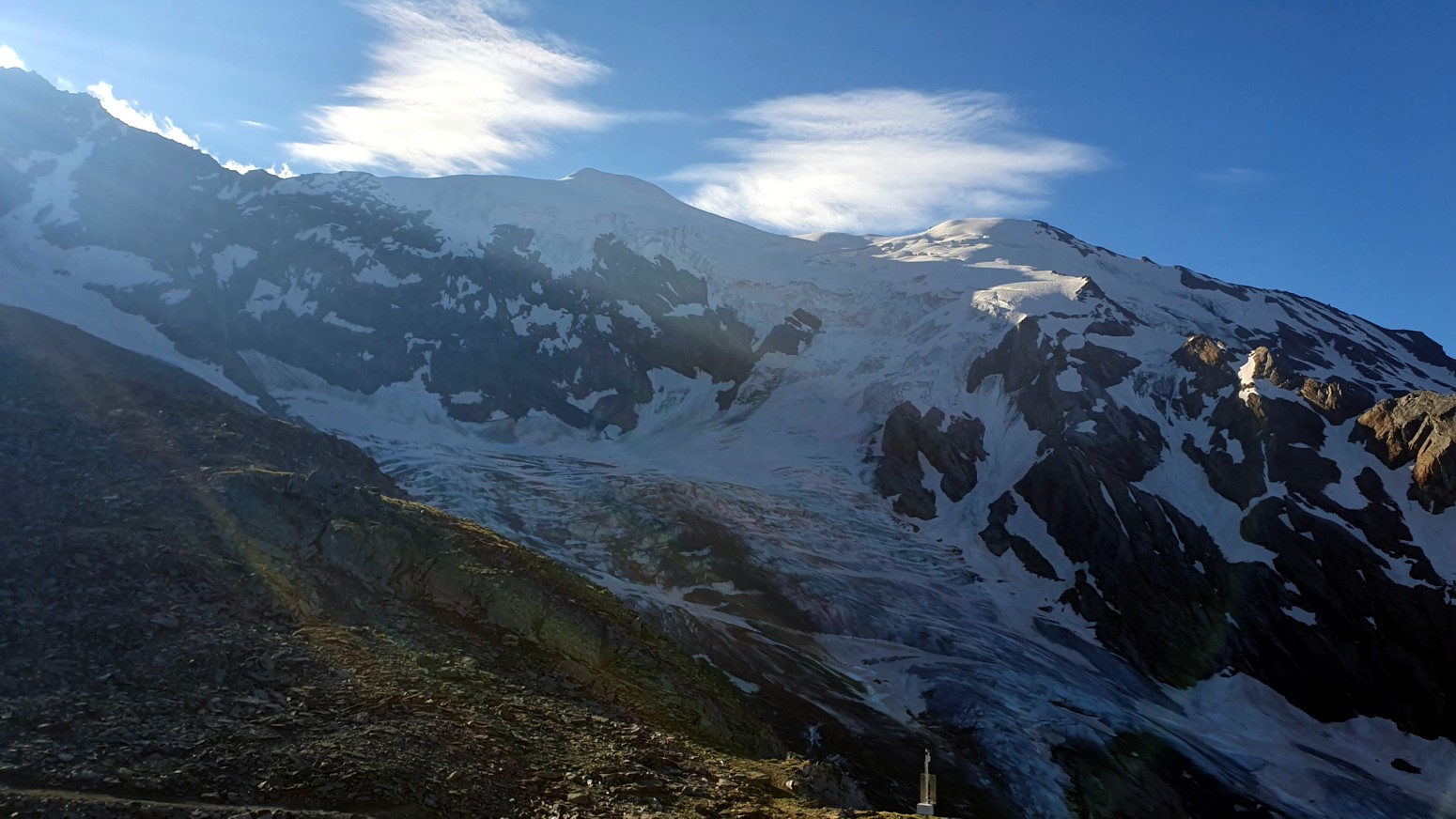 tenemos enfrente el "Weissmies", al que podemos llegar a tocar su glaciar y ver como las