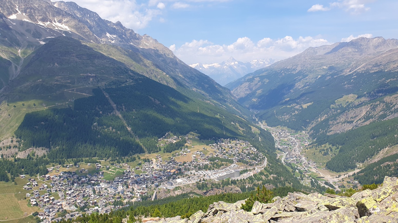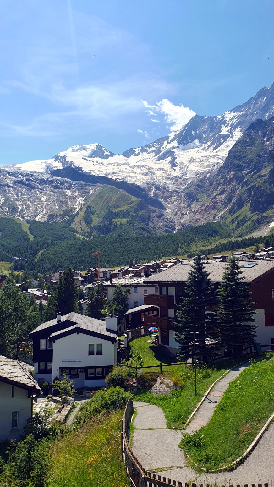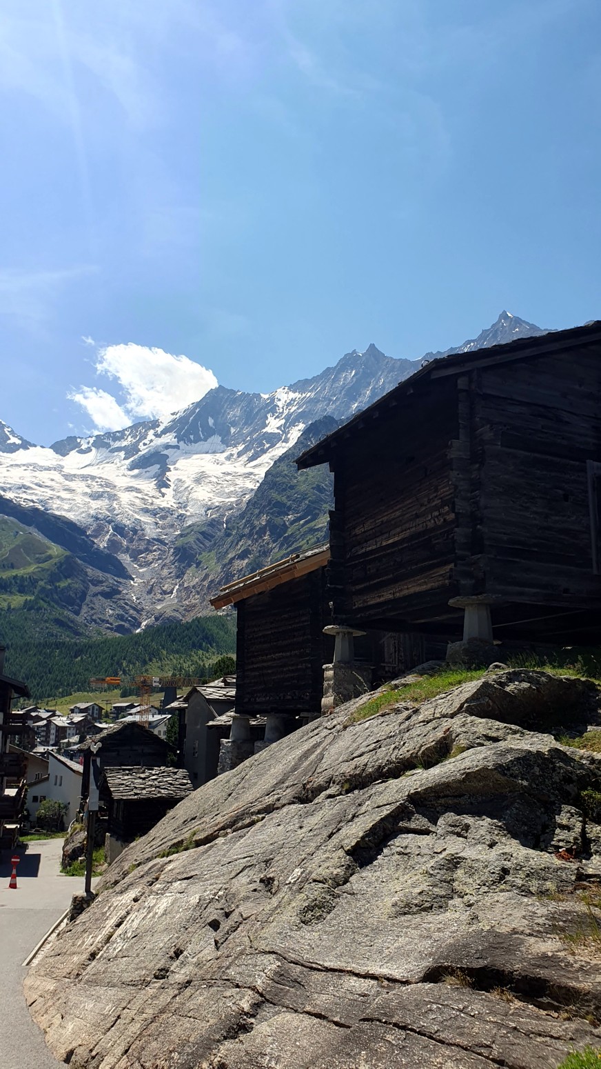 del pueblo ya se pueden ver esas grandes montañas que nos rodean como el Dom de 4545m o justo enfrente el famoso