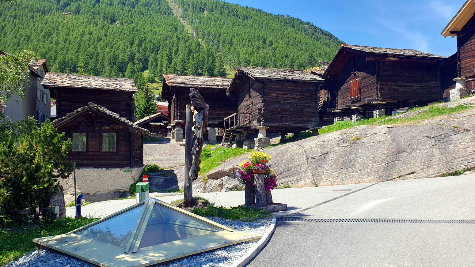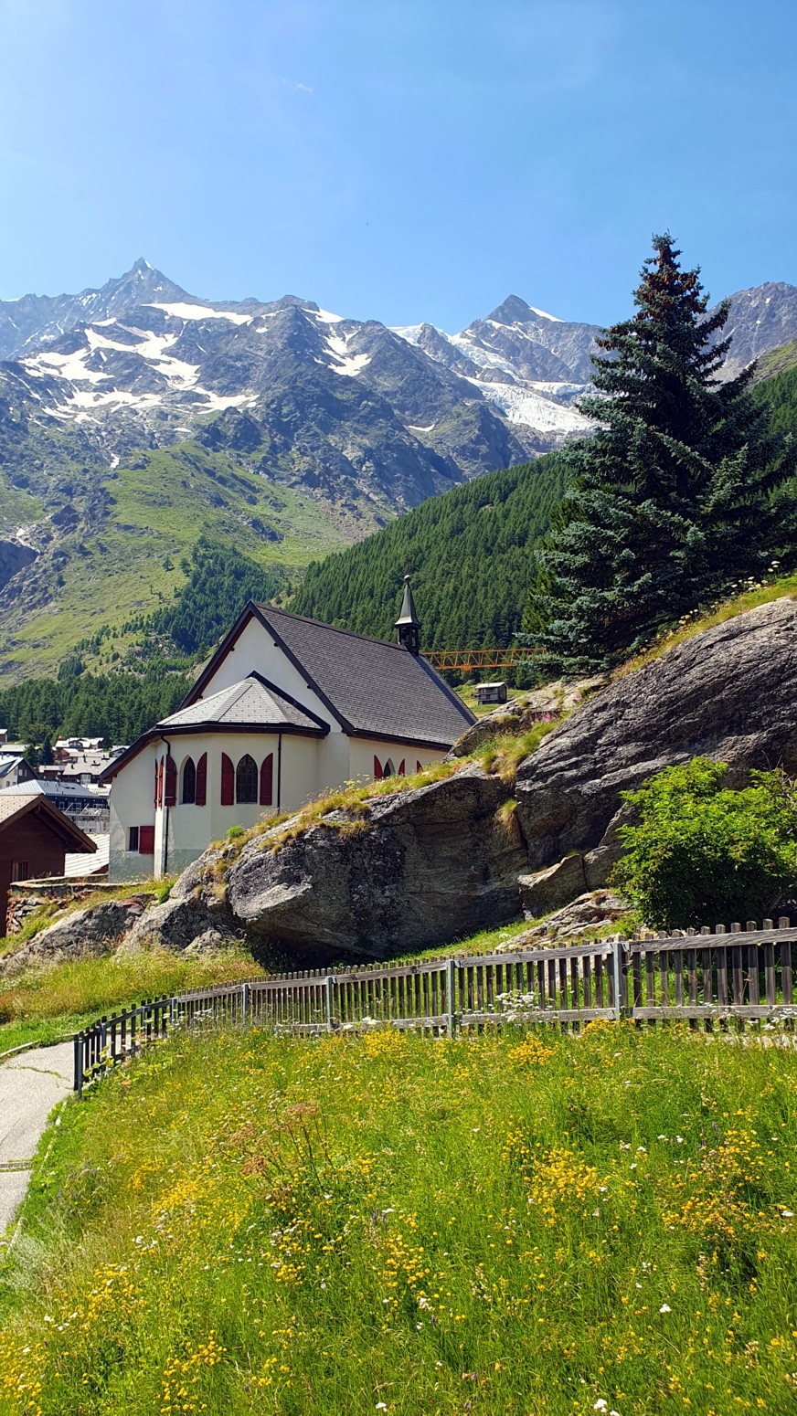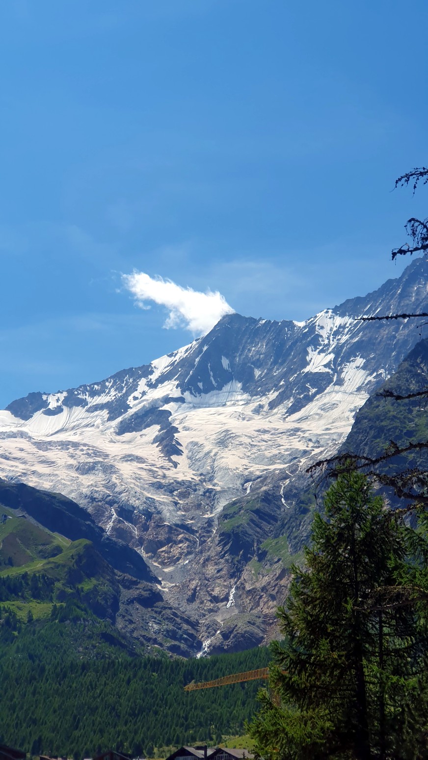 del pueblo ya se pueden ver esas grandes montañas que nos rodean como el Dom de 4545m o justo enfrente el famoso