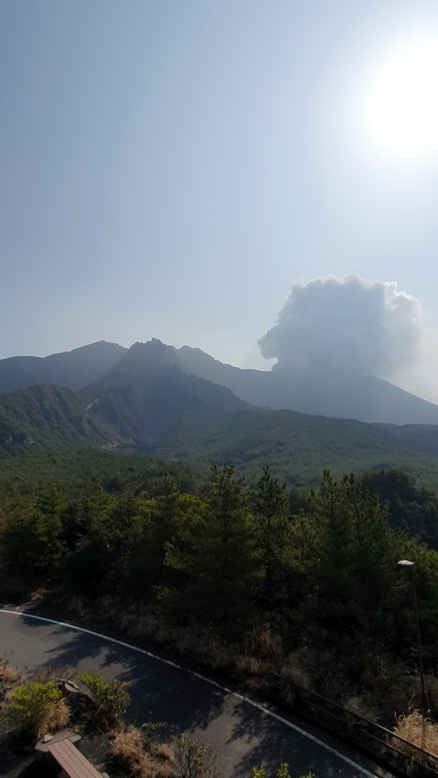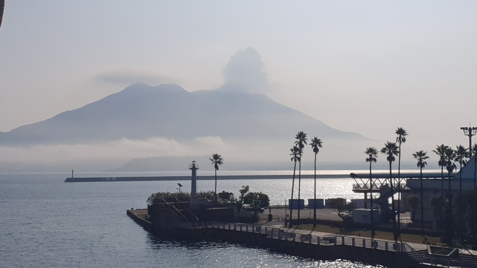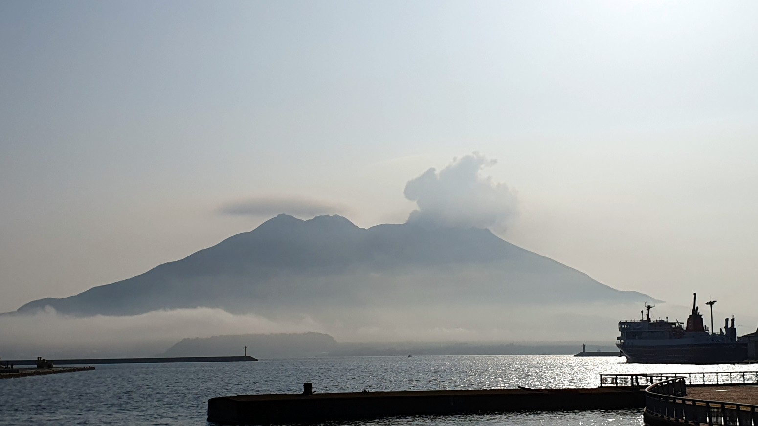 lugar varias veces al día. Situado en el centro de la bahía de Kagoshima, Sakurajima es la característica geográfica más prominente de la zona, con una elevación de 1117 metros
