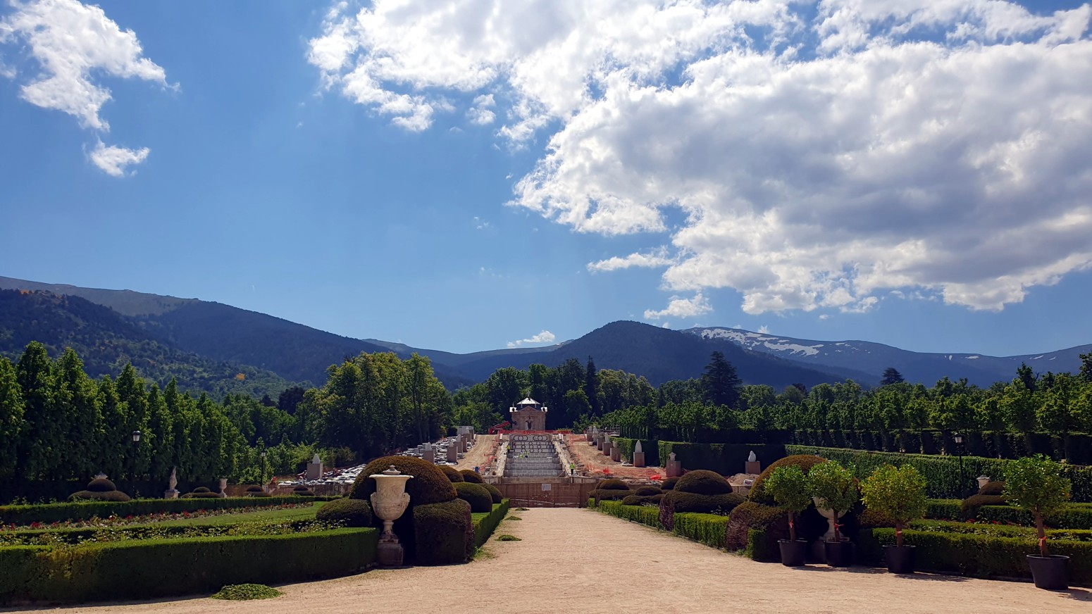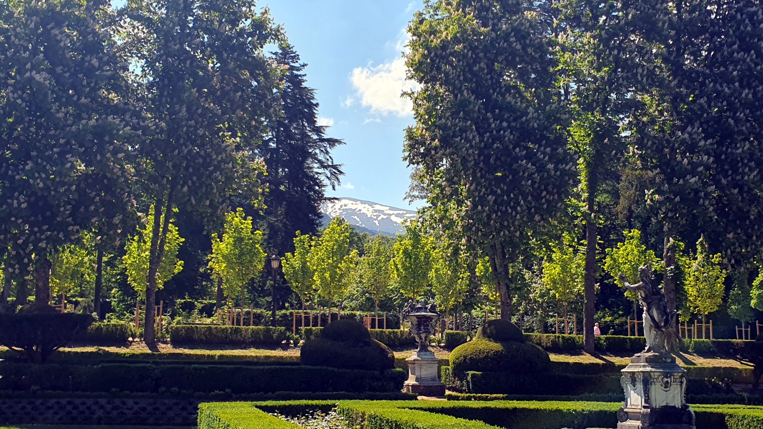 dormitorio real con su balcón a los jardines, fuentes y la magnifica vista a la sierra.