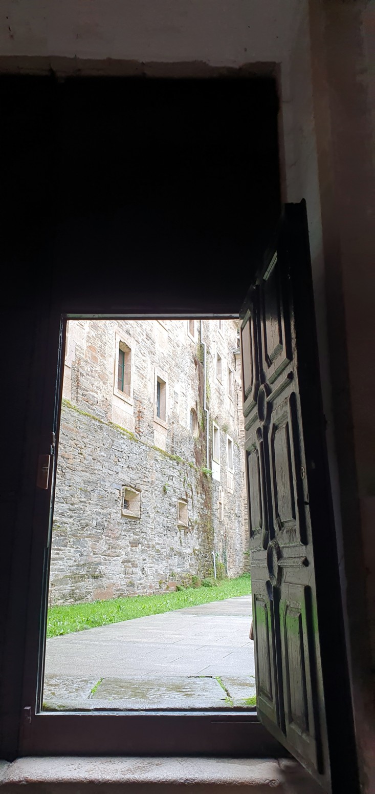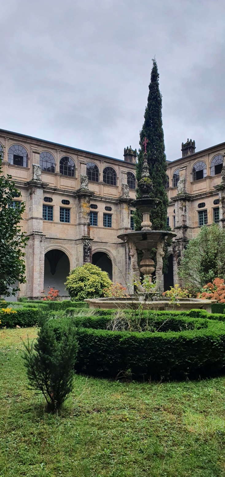 de sus claustros de piedra de granito.