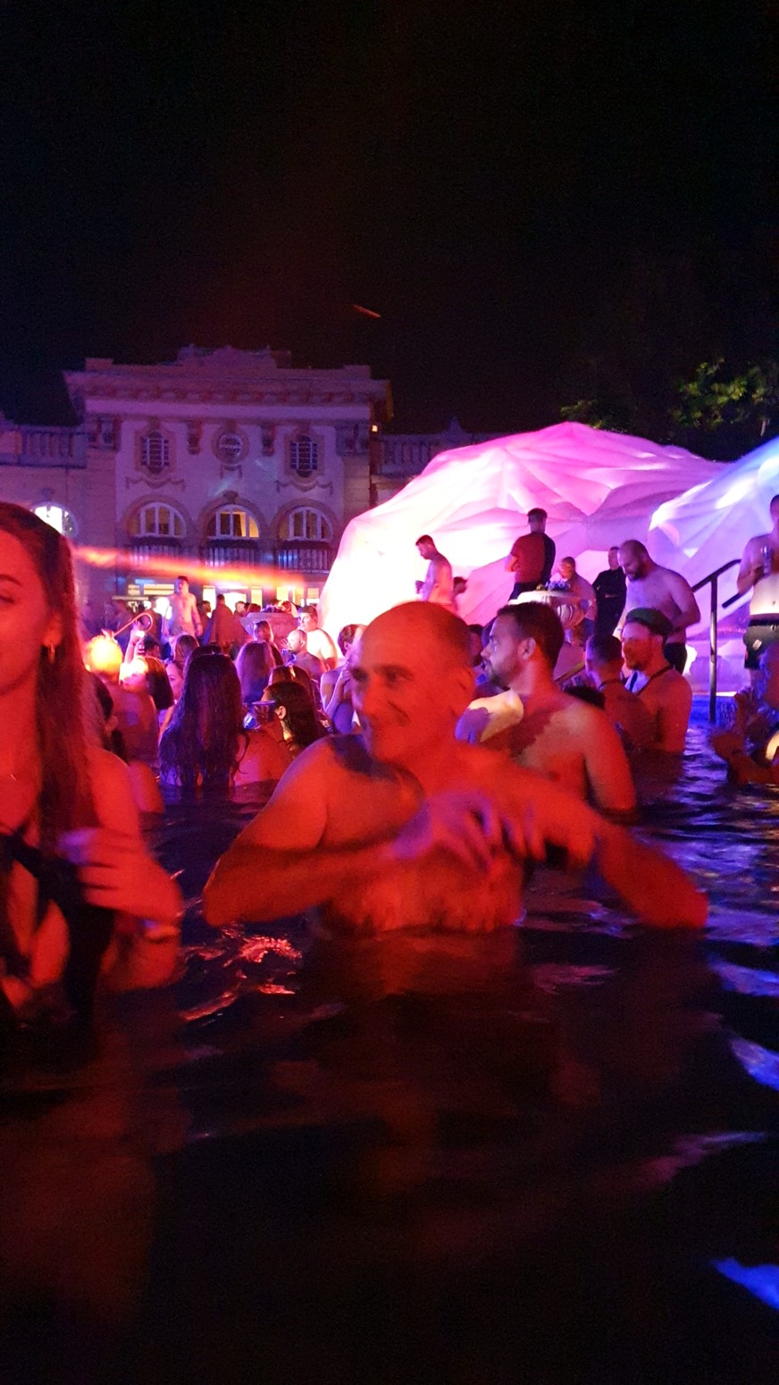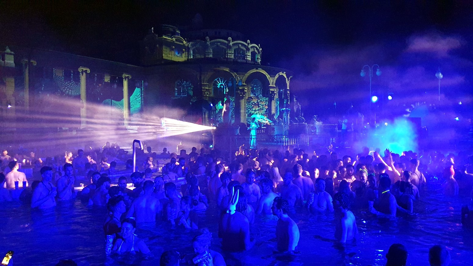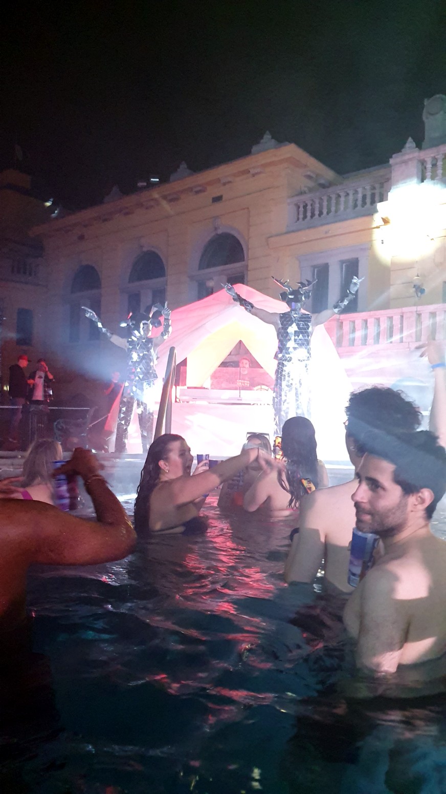 por lo que el ambiente con la música y las luces es muy espectacular con el entorno de los viejos y famosos baños lo que