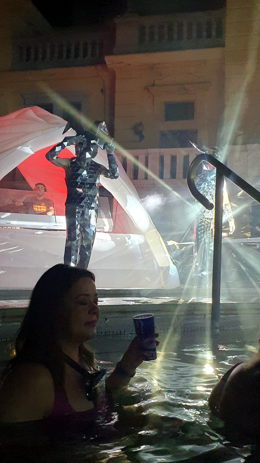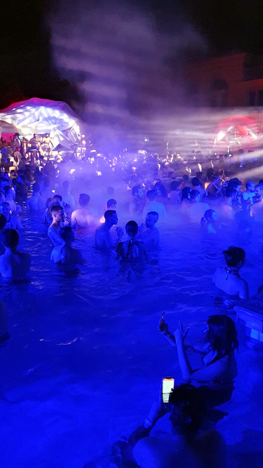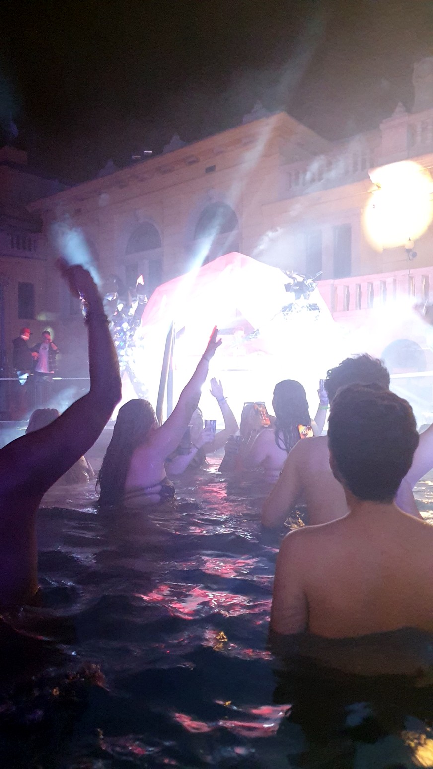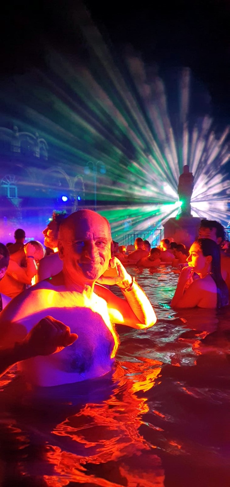 por lo que el ambiente con la música y las luces es muy espectacular con el entorno de los viejos y famosos baños lo que