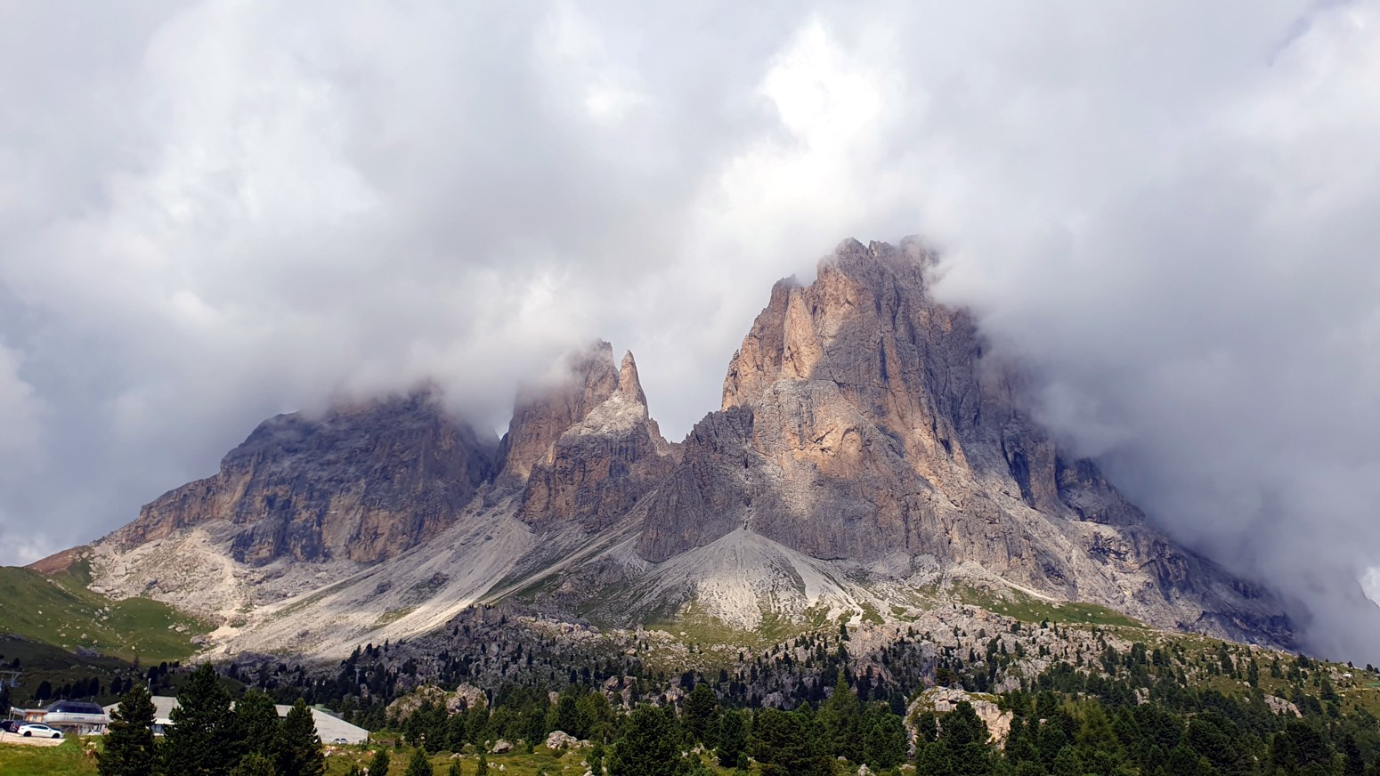 El paso del Sella se encuentra a 2200 metros sobre el nivel del mar y divide el Val di Fassa y el Val Gardena, o lo que