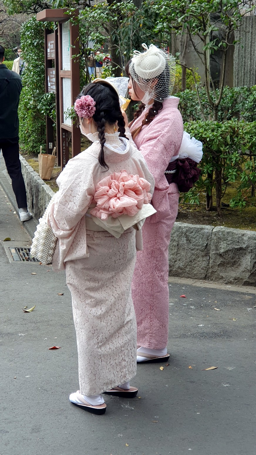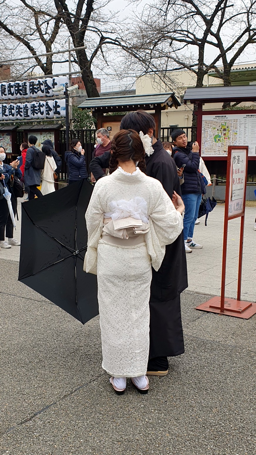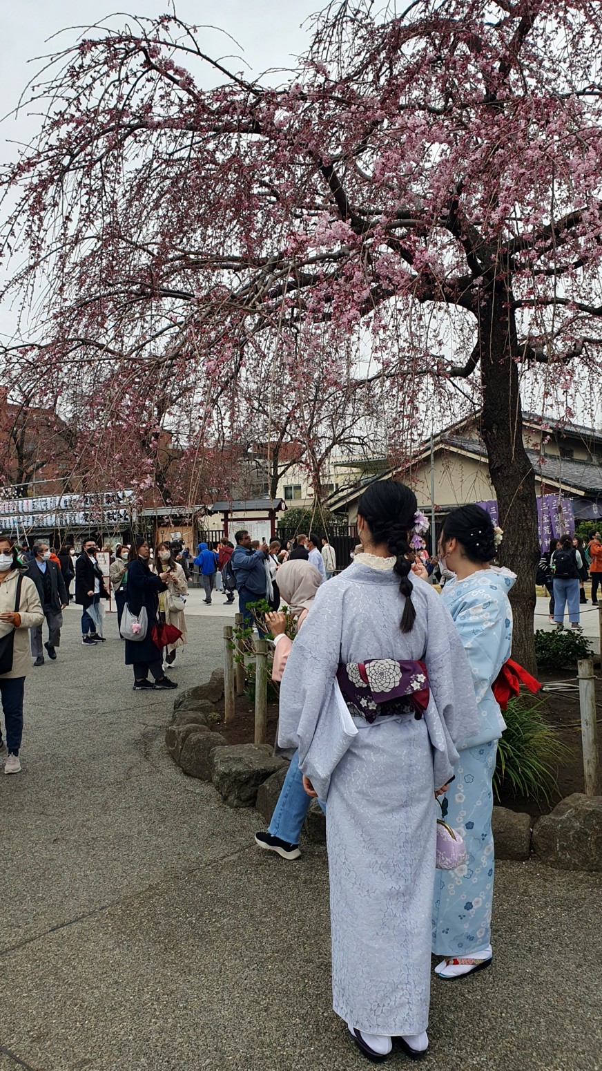 Había muchas jóvenes con kimono visitando el templo y además los ciruelos en flor le daban un bonito aspecto, y si a eso le sumas que dentro del monasterio puedes comer casi