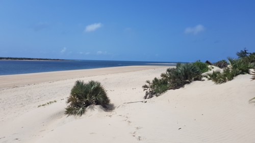 Se trata de un fabuloso arco de arena blanquísima con un ambiente de dunas