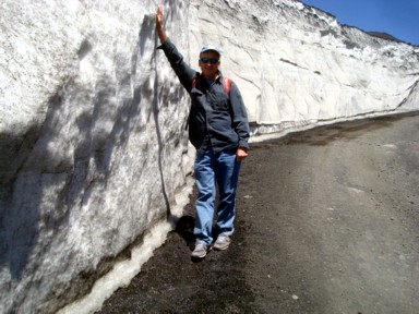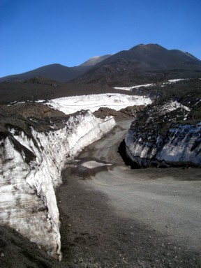 camino que sube a la cima del Etna atravesando un gran nevero (fotos 9 y 10). Y