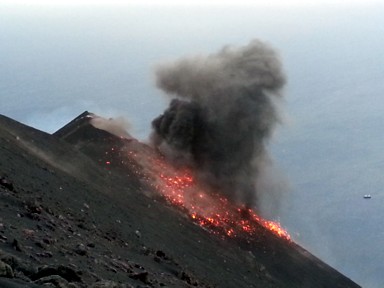 estrombolianas" o sea erupciones explosivas separadas por periodos de calma , y