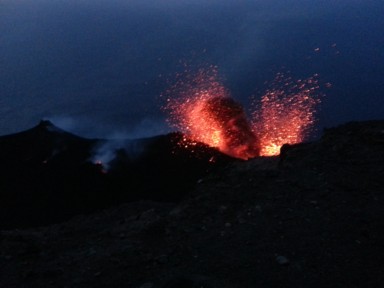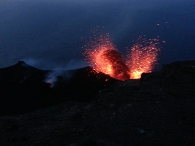 cuenta que se trata de un volcán activo con explosiones de fuego y lava cada 20