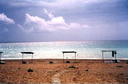 de playa de arena fina por ambos lados, hermosas ruinas helénicas, y antes un pueblecito