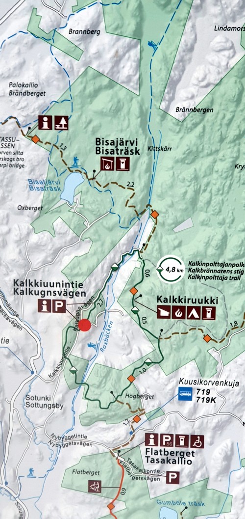 (Kalkinpolttaja trail) que transcurre enteramente por bosques y