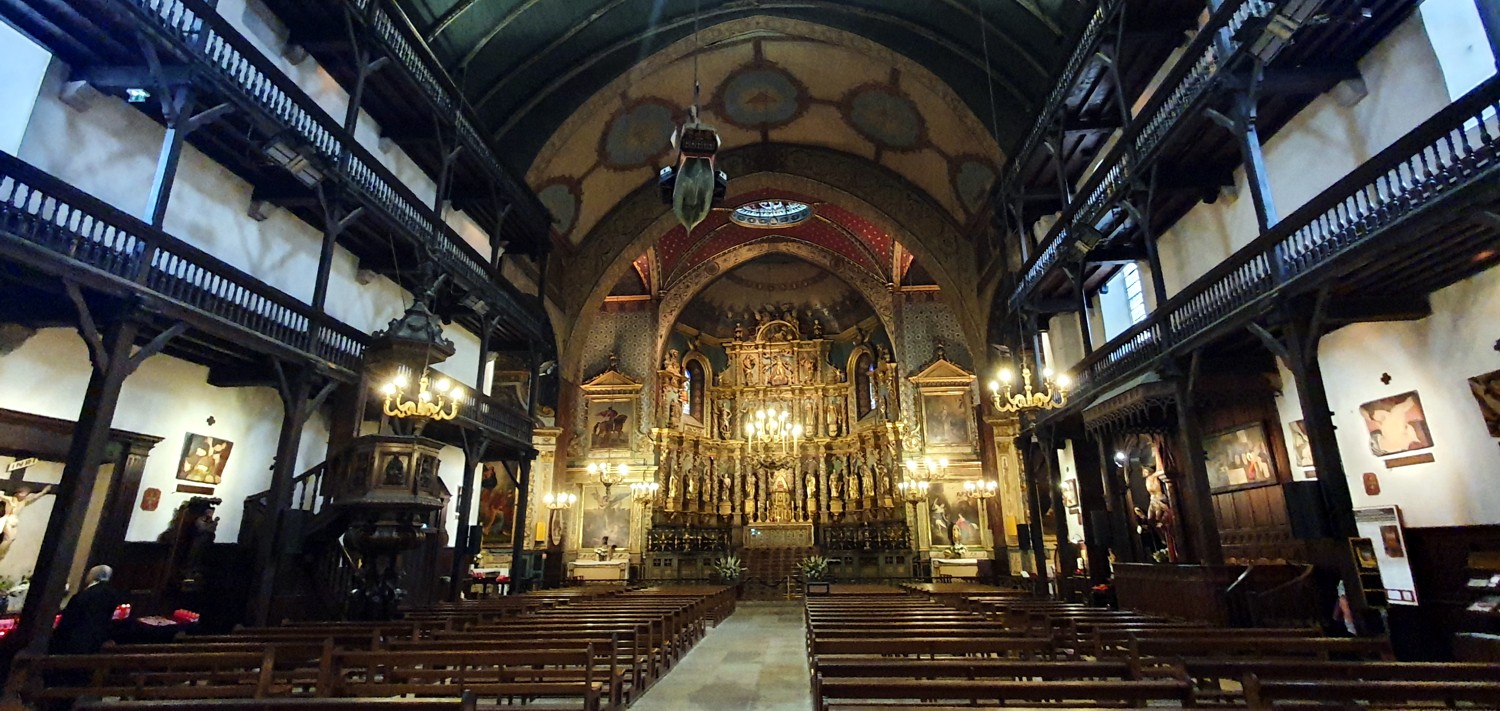 considerada una de las iglesias más representativas del País Vasco. Su exterior austero esconde un interior de nave única en el que destaca el monumental altar barroco del siglo