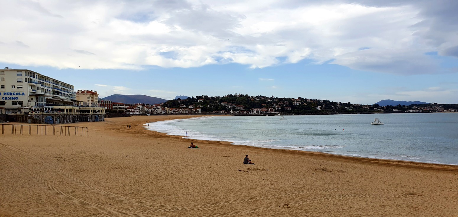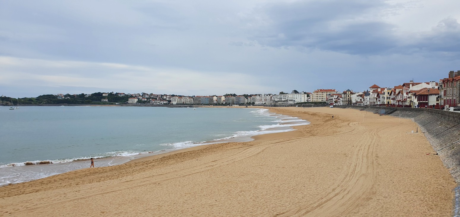 una tranquila bahía con forma de media luna y con una hermosa playa de fina arena y posee un centro histórico lleno de coloridas casas vascas