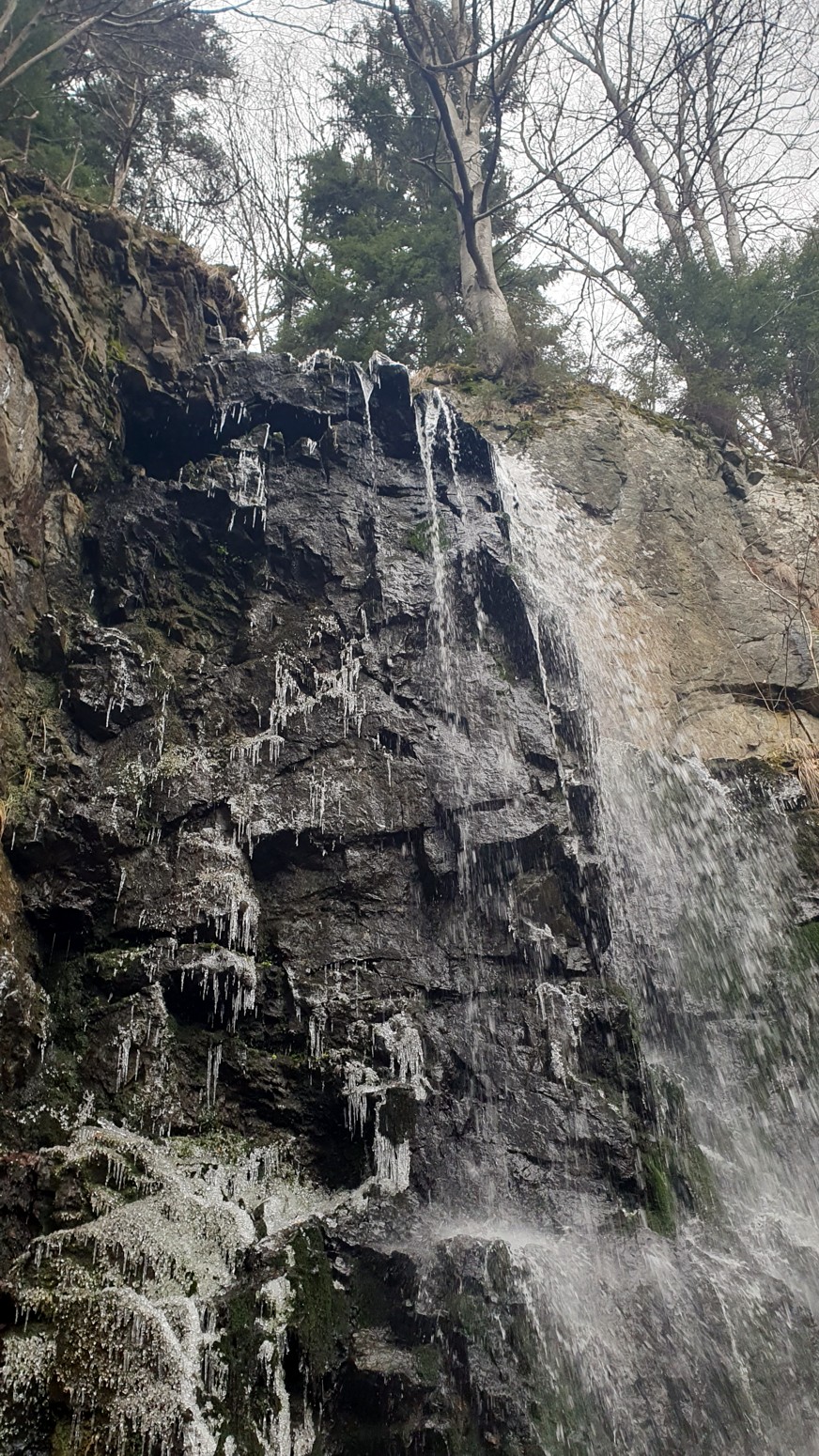 Esta cascada tiene 16 metros de altura y la mayor parte del invierno se encuentra congelada, pero nosotros solo vimos
