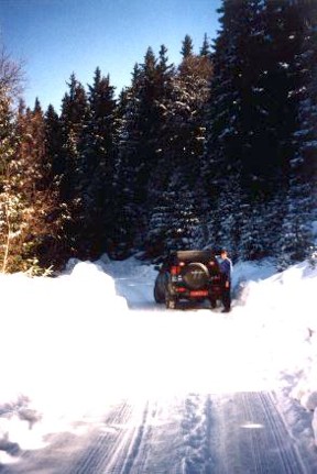 te permita continuar, en la (foto 1), se aprecia que la nieve ya llega a la altura del Terrano, que no es precisamente un coche bajito. Así que allí mismo nos calzamos los skís