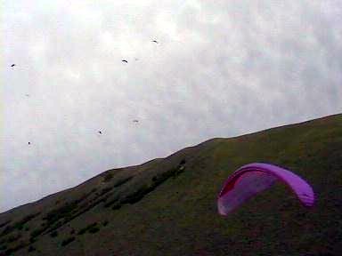 volando, y al dar la vuelta a la montaña y ver el despegue con una docena de parapentes