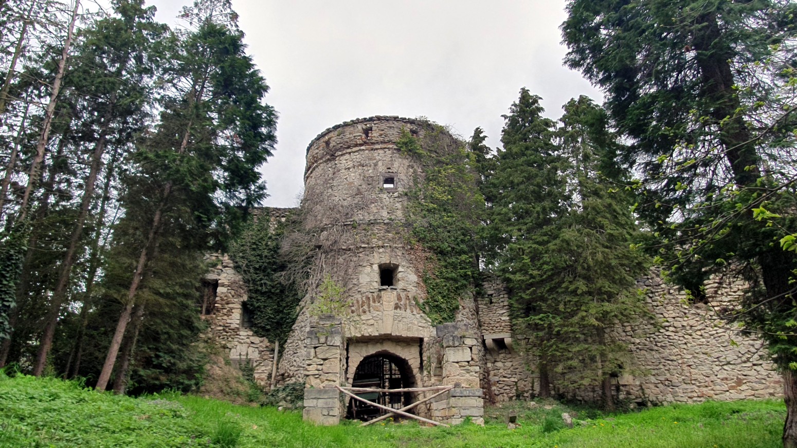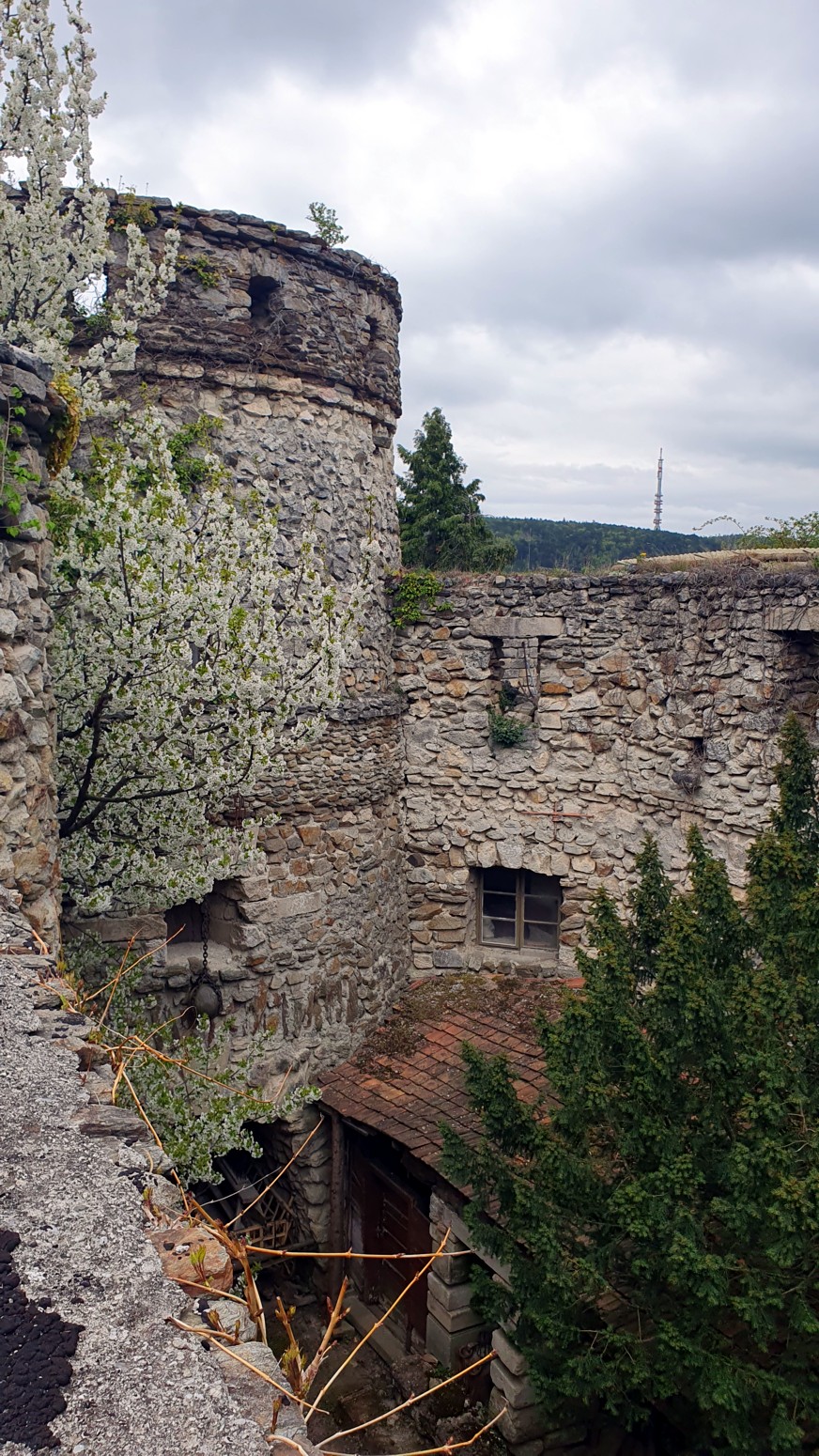 de madera hasta el Loverek. En 1959, comenzó la construcción del actual castillo de piedra, luego se subió a su bicicleta y recorrió los