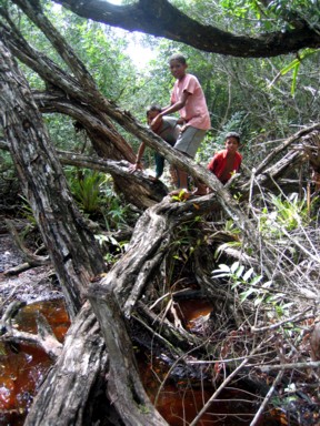 "aldea" (foto 2). Y allí en seguida los niños se me ofrecen a guiarme hasta la