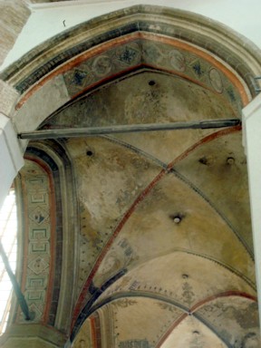 Desde el interior sorprende la altura de la nave central, y todos sus frescos,