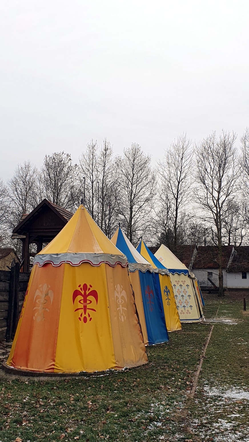 En la parte inferior del castillo se puede ver la zona donde se realizan los torneos medievales, las tiendas de campaña de los caballeros y