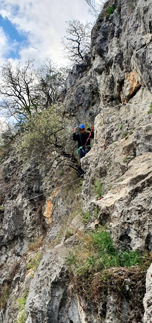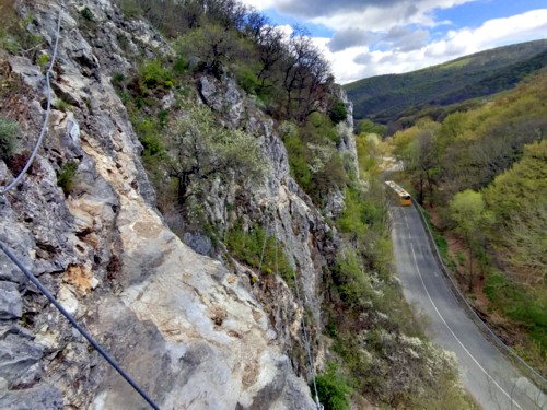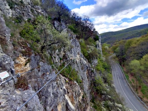 La vía ferrata es muy espectacular sobre la carretera bordeando un barranco. Hay todos los niveles de dificultades por lo que