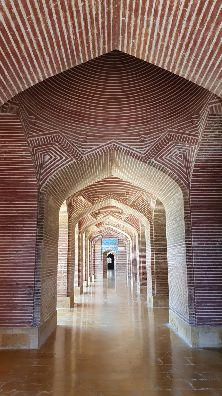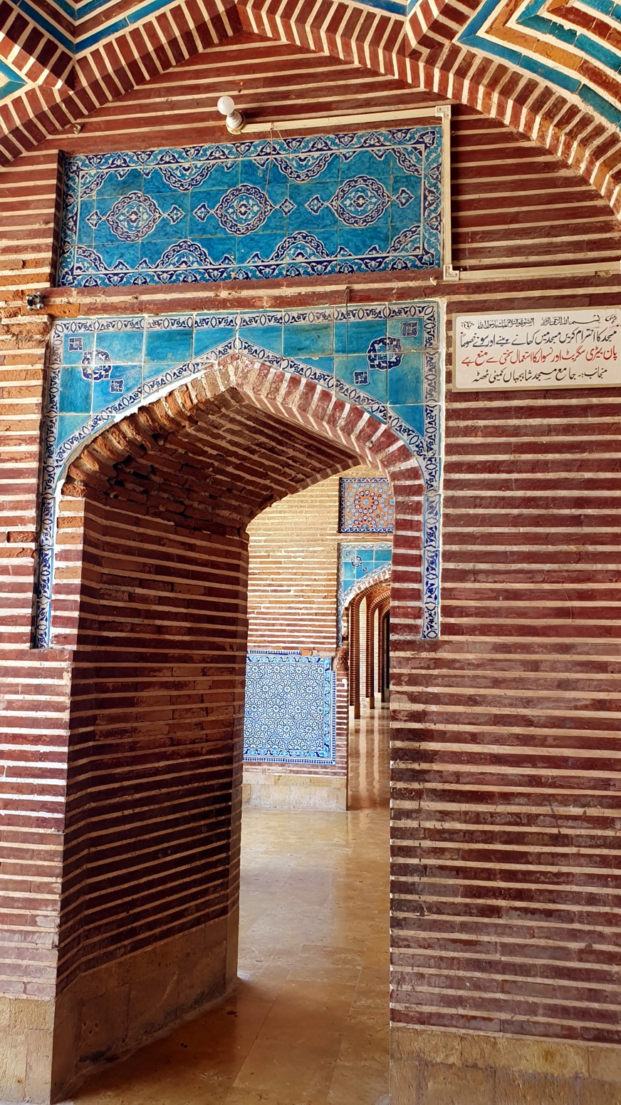 ladrillo geométrico, un elemento decorativo raro en las mezquitas del período mongol, ya que la construyo el emperador mogol Shah Jahan en los
