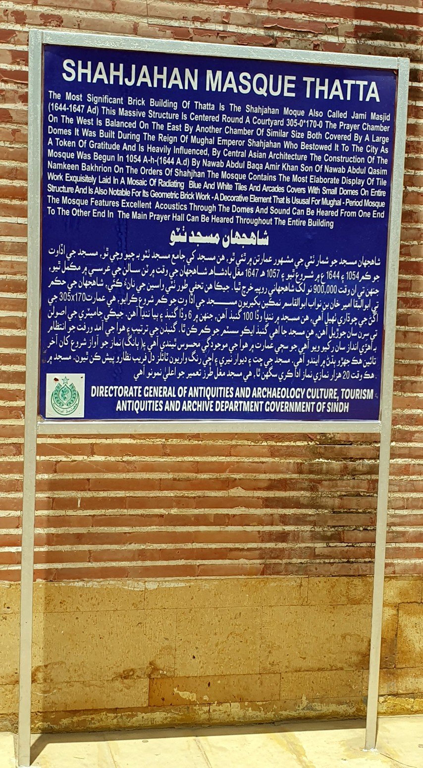 siglos XVI y XVII como indican las inscripciones persas en la mezquita, antes de que la capital de Sindh se trasladara a la cercana Hyderabad.