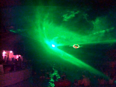 oscuro, en invierno a las 18:45 un show de rayos láser en la misma piscina para