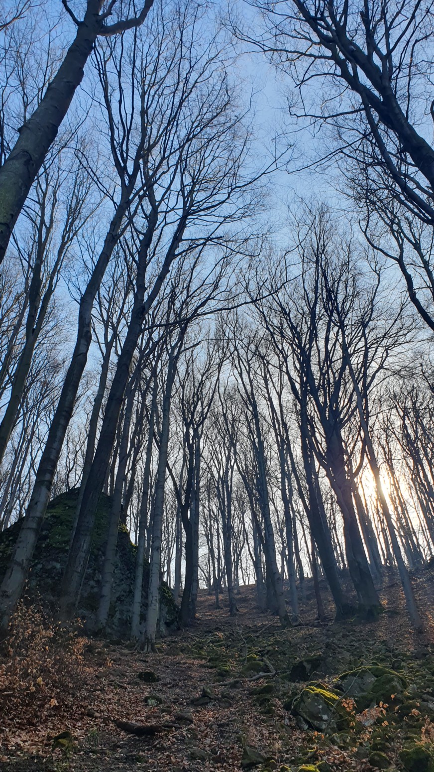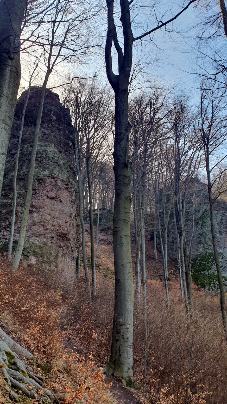 sinuosos, hayas esbeltas que se elevan hacia el cielo, paredes de roca escarpadas, panorama que se asoma entre los árboles, emocionantes formaciones