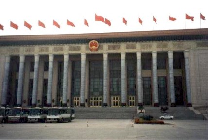 un tanque colocándose delante de él, es el centro de la capital china, su superficie de 40