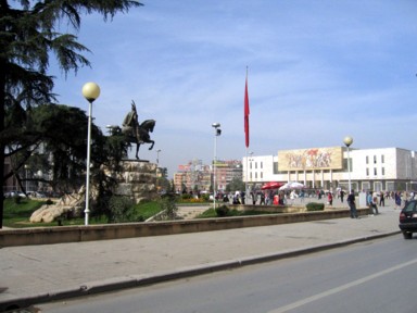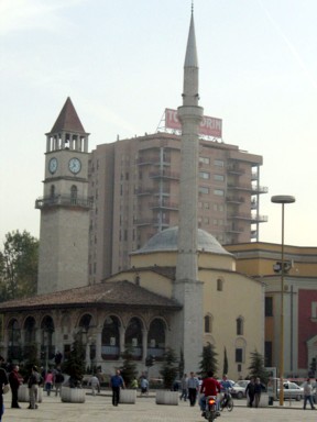 la (foto 2) la de Et´hem en la gigantesca plaza central de Skenderbeg, junto a la torre del