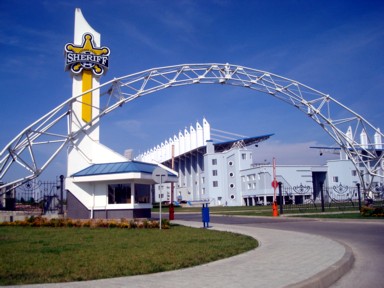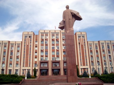 Recorriendo Tiraspol a pié te encontrarás escudos soviéticos y estatuas del