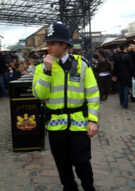 están presentes en toda la ciudad (foto 3). Los típicos "bobbys" con sus
