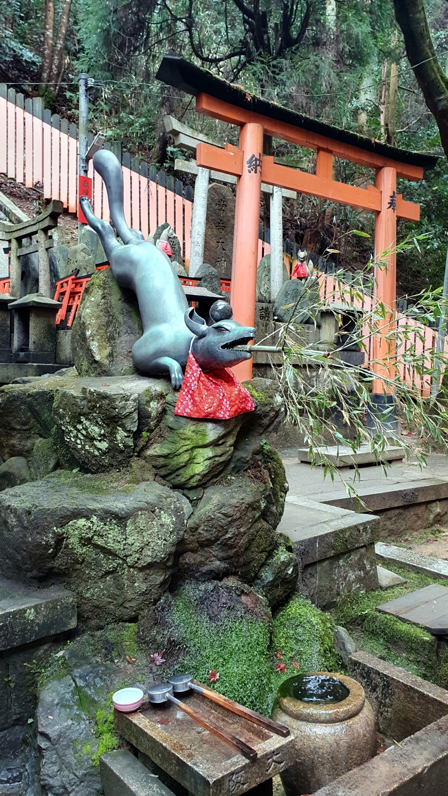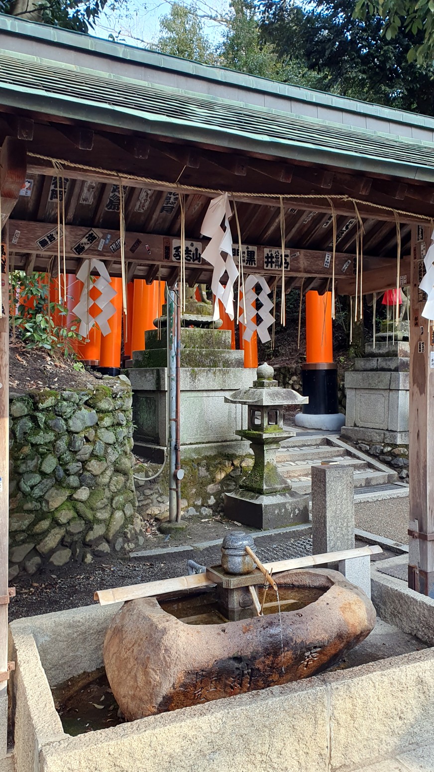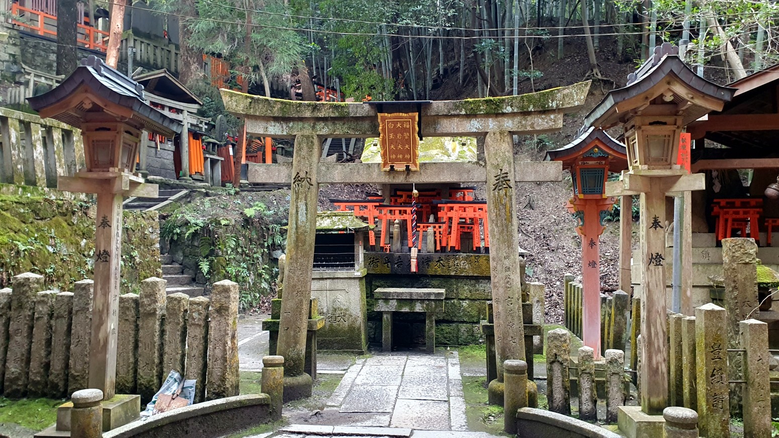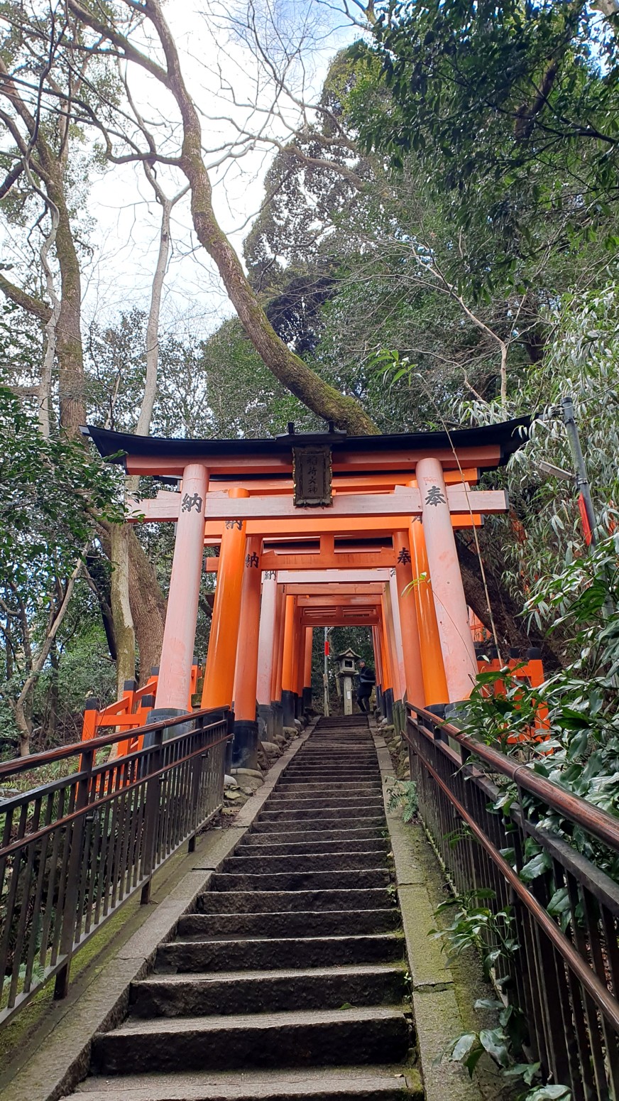 Las puertas torii de color bermellón están pintadas siguiendo la técnica inari-nuri, igual que el santuario principal y es un lugar de gran espiritualidad. Y es que desde el