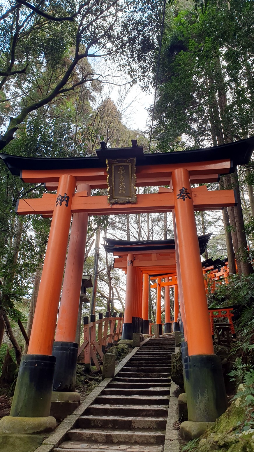 Construido en 1499, aquí es donde se reza a las deidades de la montaña Inari y de hecho el santuario está alineado para poder ver los tres picos del monte desde aquí, a los que