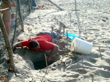 saben exactamente que día va a eclosionar cada nido enterrado. Solo hay que