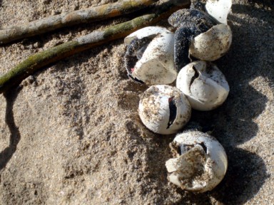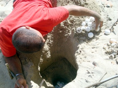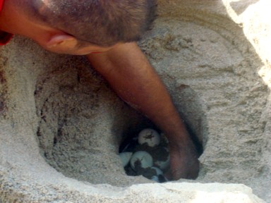 de toda la playa para ponerlos a salvo de animales y mareas altas que los pueden