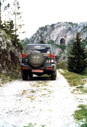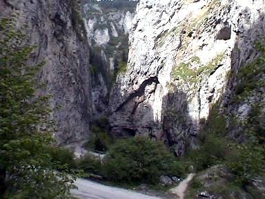 El Desfiladero de Trigrad, es una carretera tallada en un barranco vertiginoso que conduce al fin del mundo, o sea al pueblo de Trigrad, ya a la entrada podréis contemplar formaciones de roca maravillosas como estas que asemejan a un elefante (foto 1), más tarde la carretera se va estrechando y el camino en subida se va haciendo más difícil, y a la vez más espectacular (foto 2). Cualquier lugar es bueno para hacer pequeñas exploraciones, por la parte alta del desfiladero (foto 3), o simplemente a la entrada de una de las muchas cuevas de la zona. La gruta del diablo (foto 4), es de visita obligada, según la leyenda, Orfeo, nacido en los Ródopes, penetró por esta cueva en el reino de Hades para encontrar a la bella Eurícide. Con su flauta mágica encantó a todas las criaturas. Y el dios de los infiernos, conmovido, le permitió reunirse con su esposa (muerta el día de su matrimonio), a condición de no mirar atrás, así pues prudencia por esta carretera, el desfiladero, y sus criaturas mitológicas infernales..